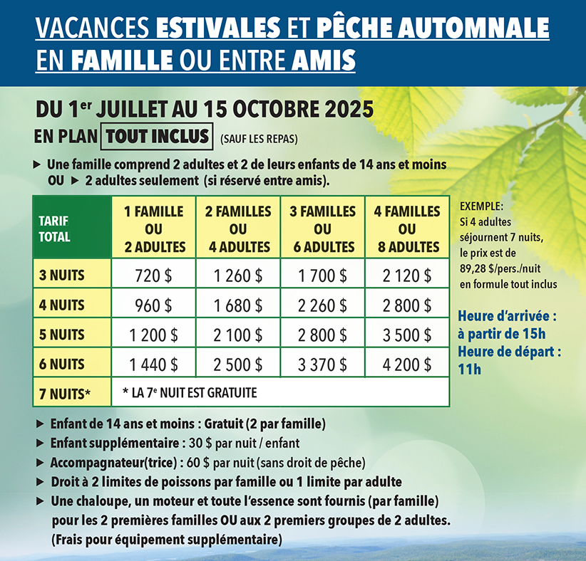 Contacter directement la pourvoirie au 819 326-4444